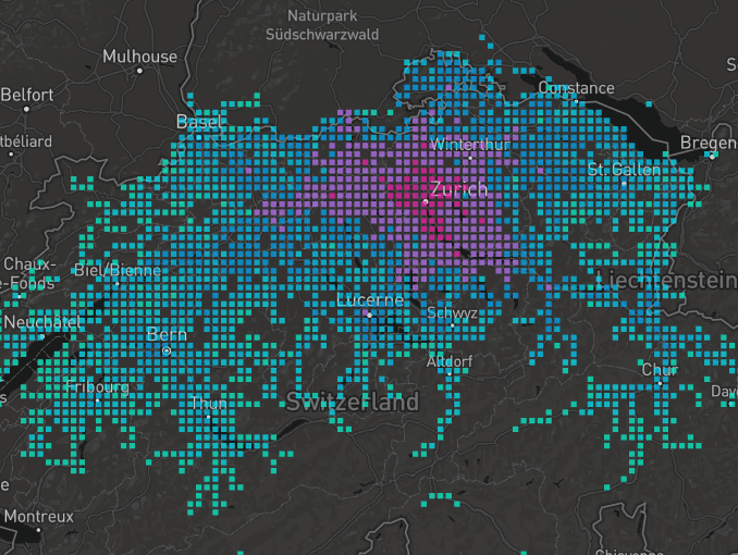 An interactive visualization of the time required to reach any place in Switzerland with public transports, from some of the main cities.